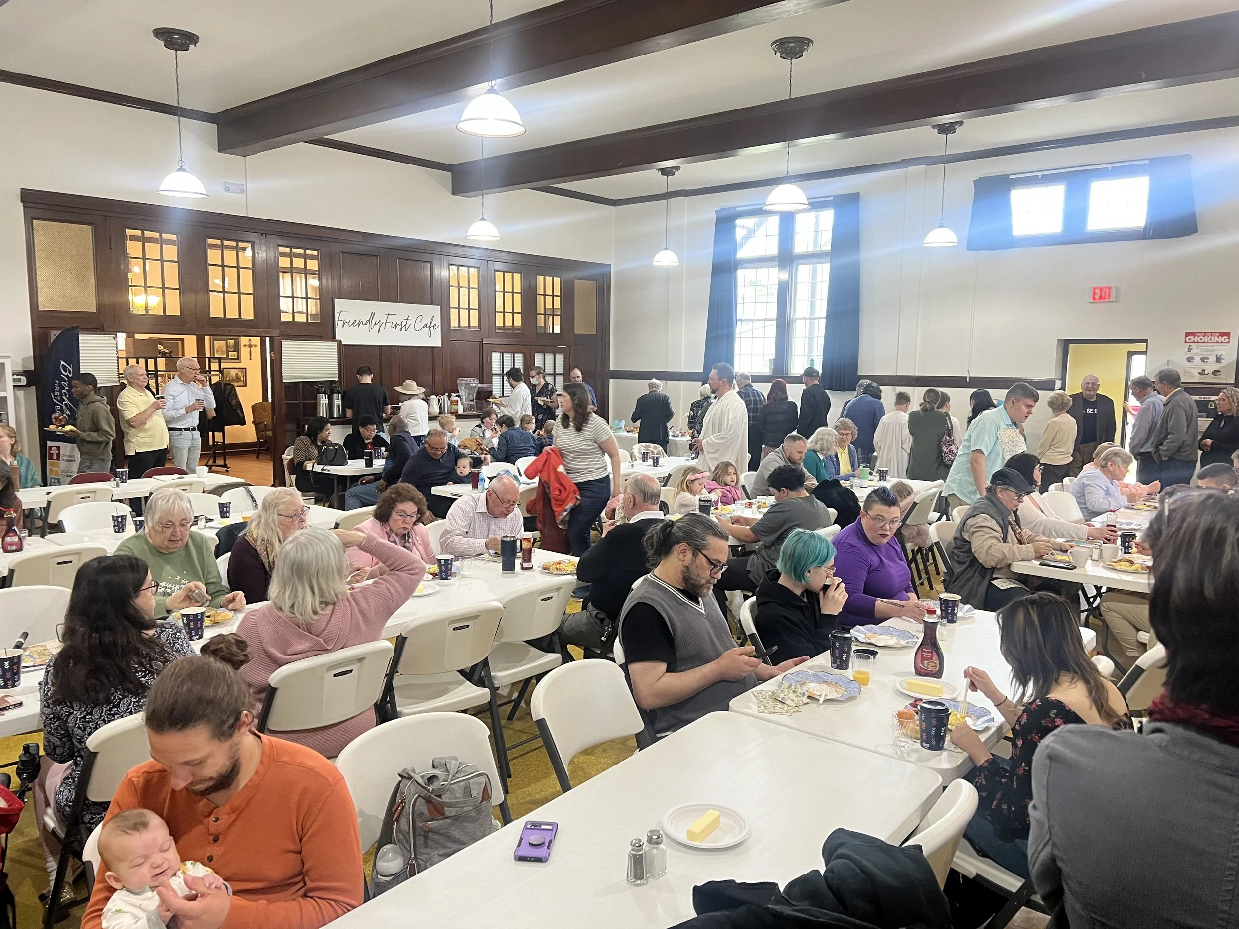 A free meal for anyone in the community! Join us for a delicious meal in a relaxed and friendly atmosphere. Each month offers a different entrée with sides and dessert. Tables are set for our guests to come eat, relax and enjoy the company of others. Some months, we even have live music!